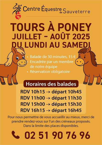 Nouveauté cet été, pour vous offrir la meilleure expérience possible les balades à poney se font désormais sur réservation.