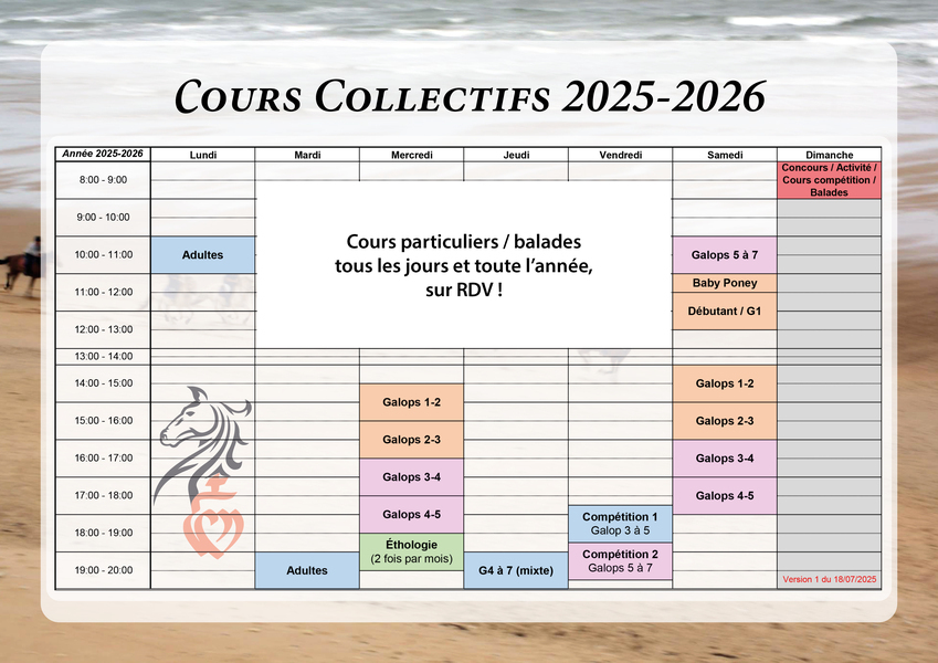 Mais bonne nouvelle, c'est aussi la rentrée au Centre Équestre ! Et qui dit rentrée, dit mise à jour des horaires de cours !